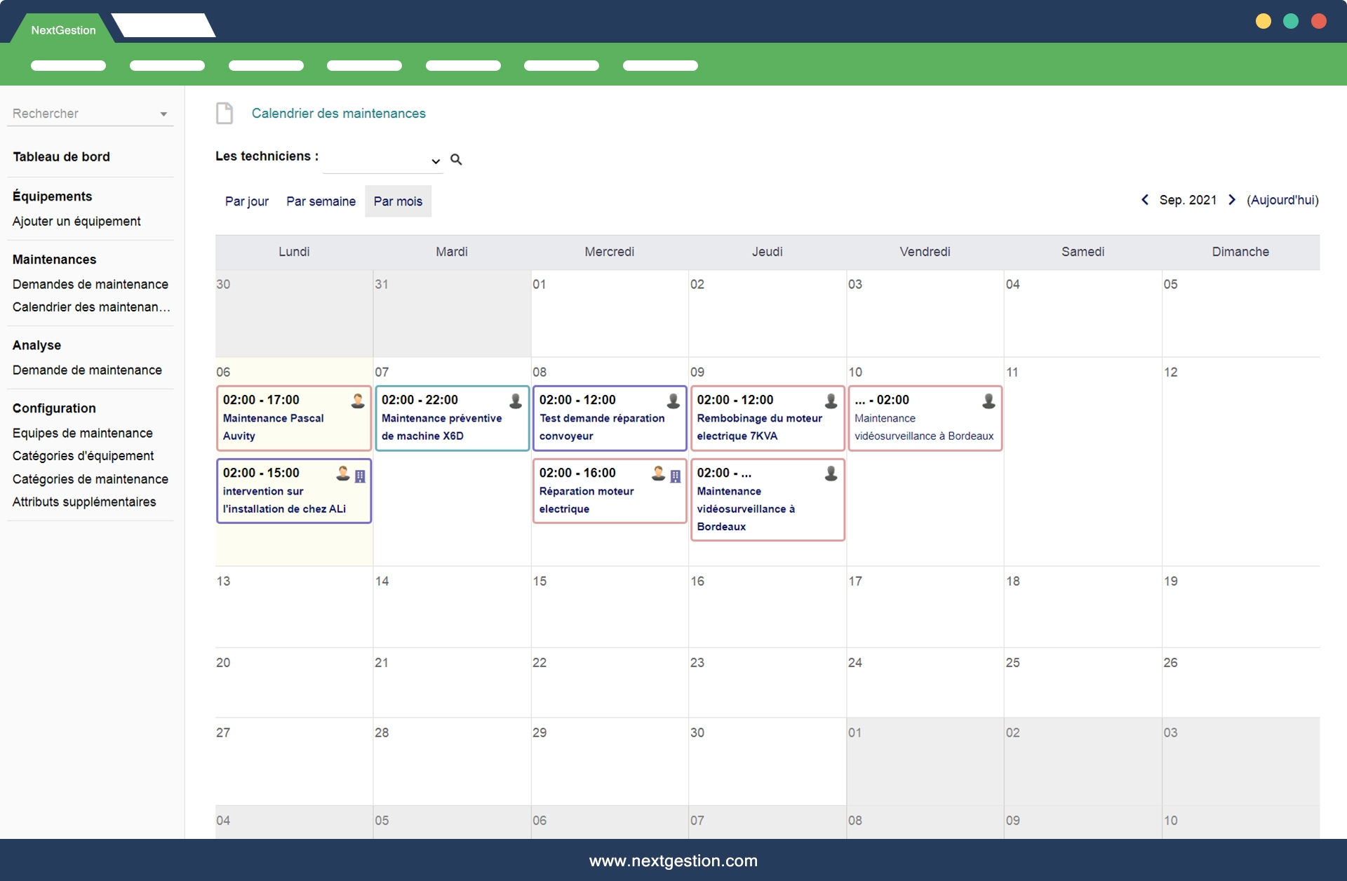 Programmez des opérations de maintenance et d'entretien à l'aide d'un calendrier.