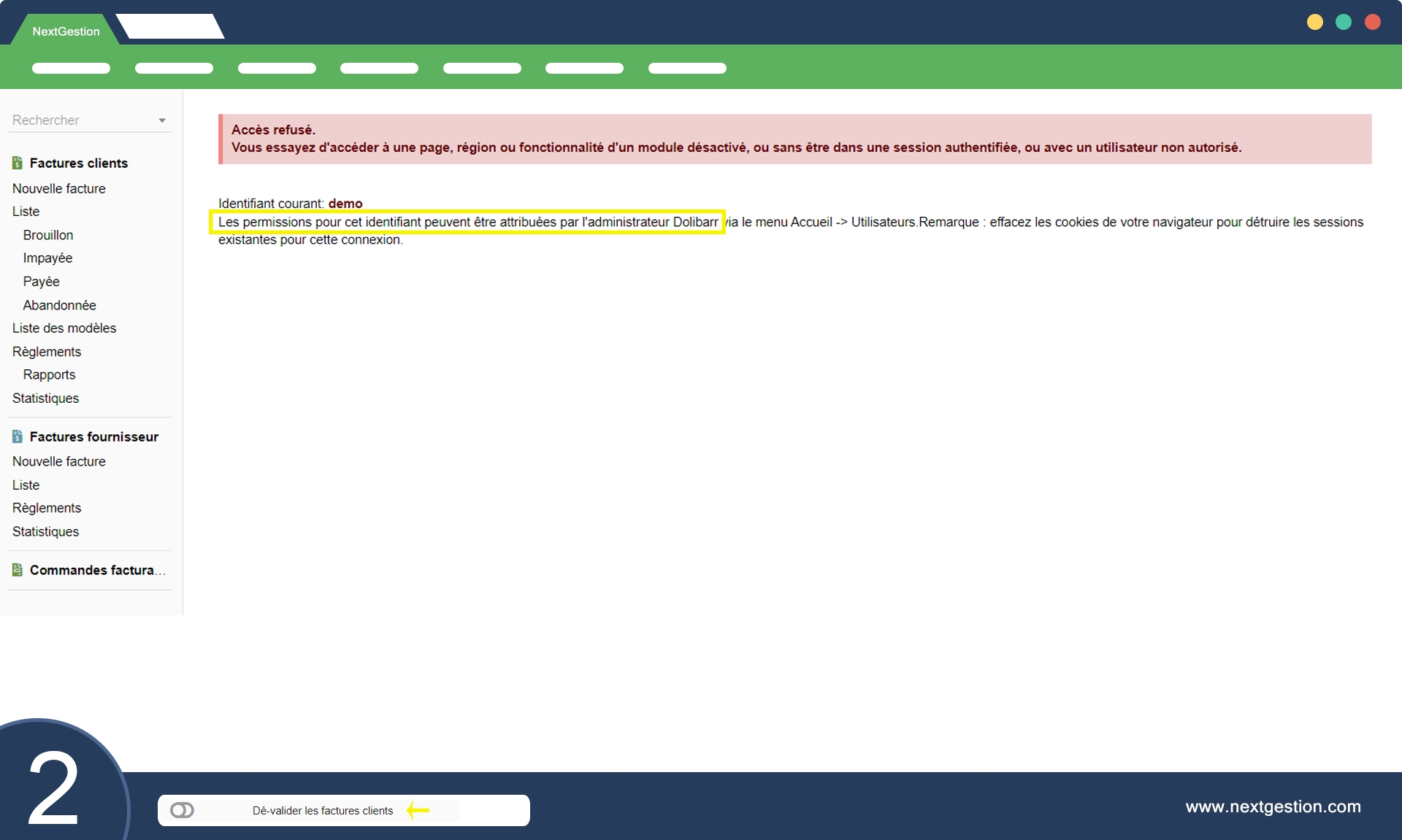 2- Gestione delle fatture: il modulo consente di determinare quali utenti possono convalidare o revocare le fatture di clienti e fornitori. Questo è essenziale per garantire che le fatture siano approvate dalle persone appropriate prima di essere inviate ai clienti o elaborate per i fornitori.