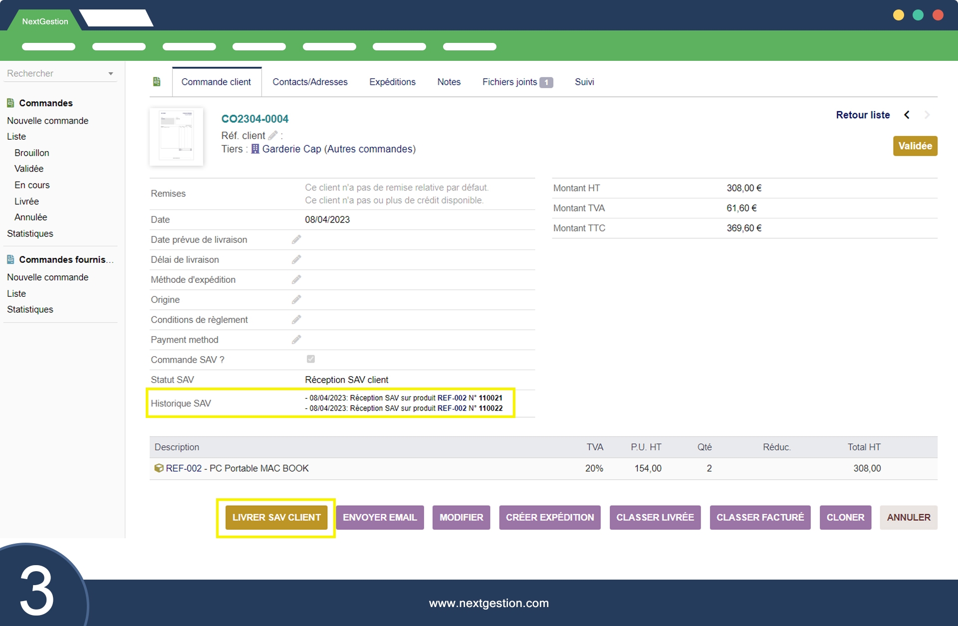 Il modulo "Ordini SAV" facilita la gestione degli ordini di assistenza post-vendita offrendo le seguenti funzionalità: