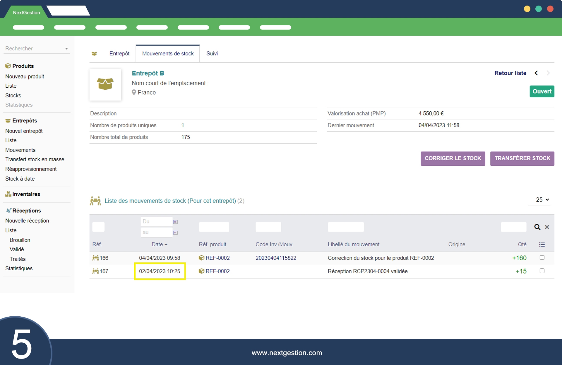 Très utile pour suivre précisément les dates de réception en stock. Beaucoup plus clair.