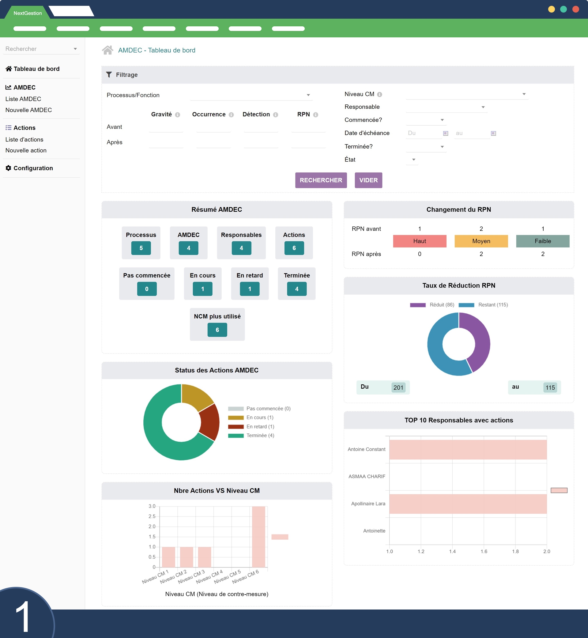 Infine, per rivedere l'analisi visiva della tua AMDEC o FMEA, seleziona i filtri nella dashboard per modificare i grafici.
