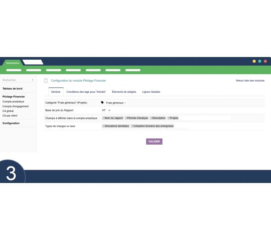 - Scelta degli indicatori finanziari da mostrare nei widget per tipo di contabilità.