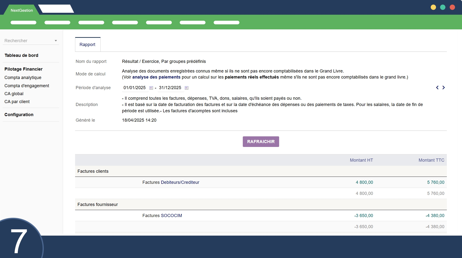 Le module Pilotage Financier nous donne une vision claire de la situation financière. Les indicateurs sont lisibles et faciles à interpréter.
