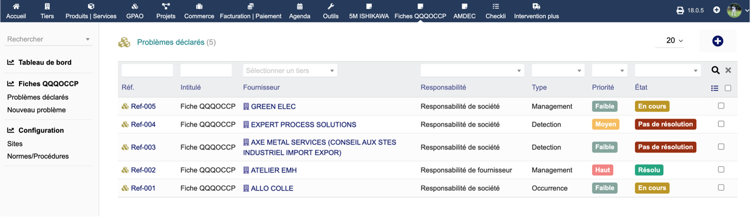 Dolibarr è un software open-source ERP (Enterprise Resource Planning) e CRM (Customer Relationship Management) progettato per piccole e medie imprese. Offre una vasta gamma di funzionalità per la gestione aziendale, coprendo aree come contabilità, inventario, fatturazione e altro ancora. Tra queste funzionalità, i moduli di "Business Strategy" sono essenziali per aiutare le aziende a sviluppare, implementare e monitorare le loro strategie aziendali. Questo articolo si concentra su tre moduli specifici: AMDEC, 5M ISHIKAWA e QQOQCCP, ed esplora le loro funzionalità e i benefici per gli utenti di Dolibarr.