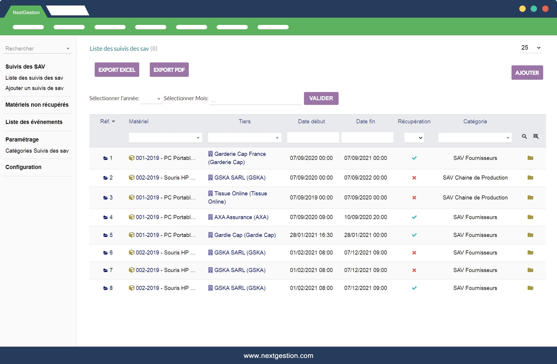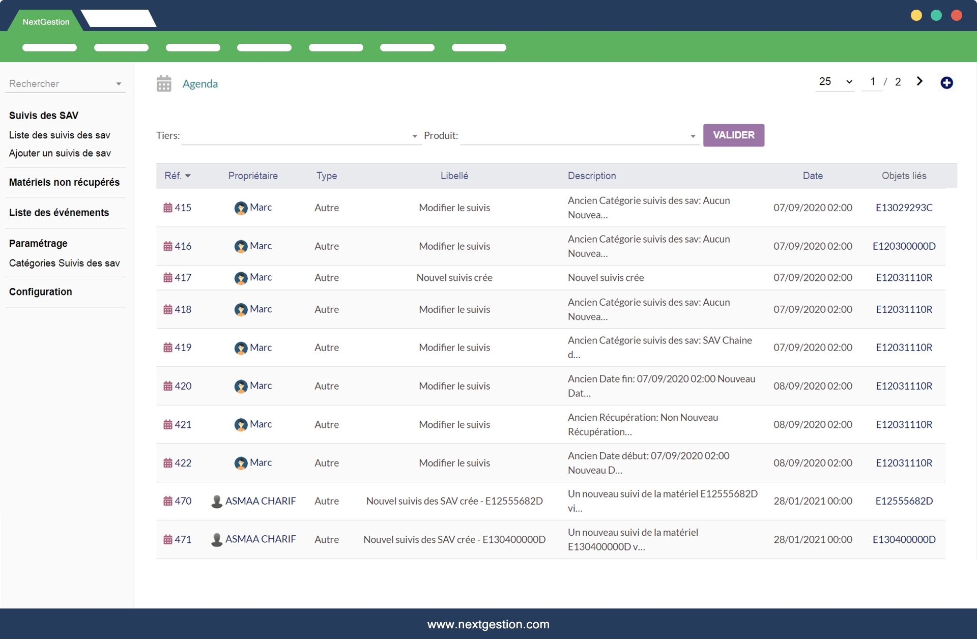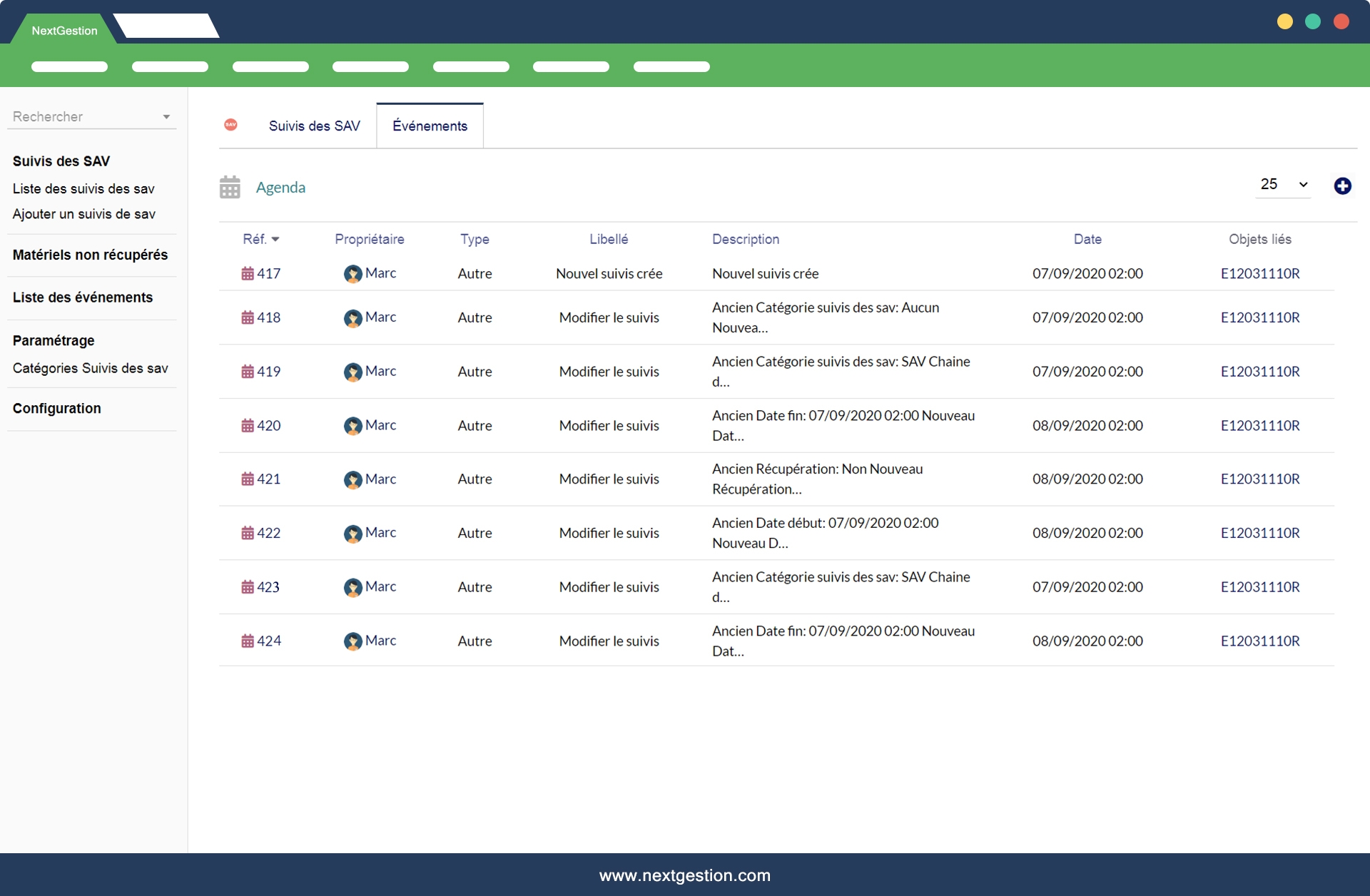 The "After-sales service follow-up" module allows you to monitor your material and equipment after a sale or rental operation ...