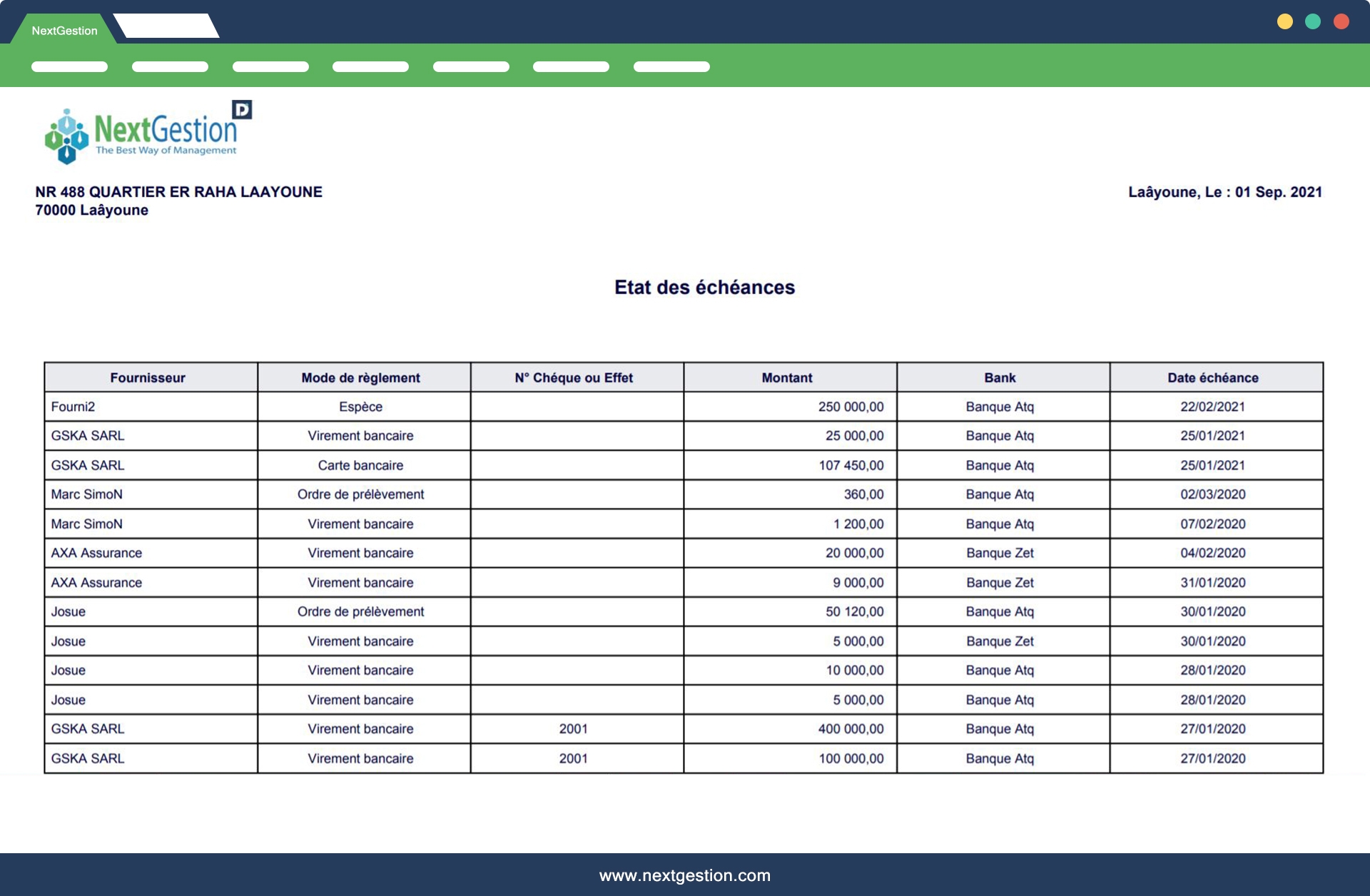 Module indispensable pour suivre les échéances clients et fournisseurs. La visibilité est immédiate et très claire.